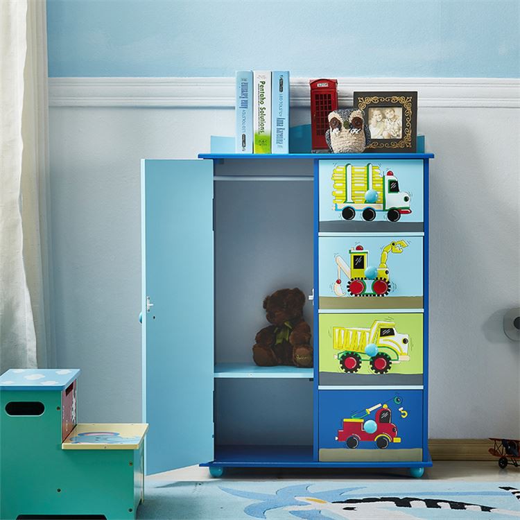 ●Modrá dětská šatní skříň se 4 zásuvkami